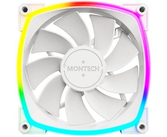 Вентилятор Montech RX120 PWM, Reverse White (RX120W) / 120mm, 4pin PWM, 3pin ARGB, 800-1600RPM, 59.0CFM, 27.0dBA, Rifle bearing