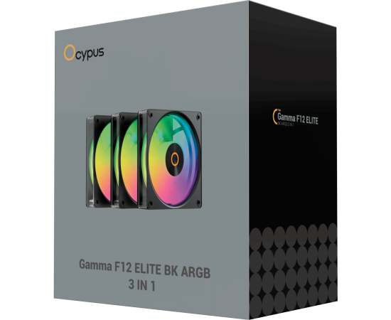 Вентилятор Ocypus Gamma F12 Elite BK ARGB 3 in 1, 120x120x25mm, 4-Pin PWM, 600-1800 RPM, 26 DBA Max, Hydro Bearing