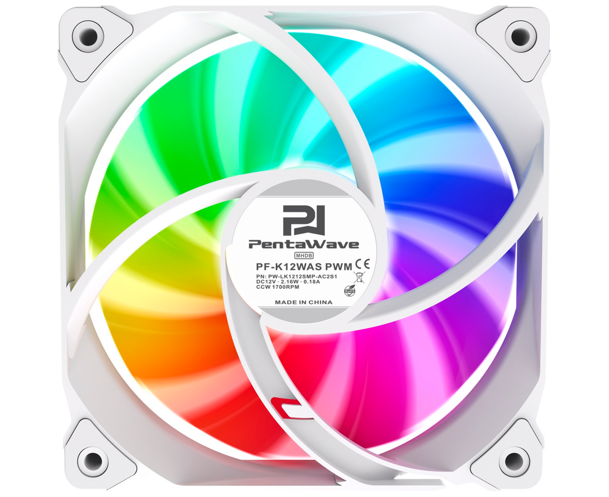 Вентилятор PentaWave PF-K12WAS PWM / ARGB / 120mm 4 pin Magnetic Hydraulic 500-1700rpm 76CFM 28.7dBA/ White