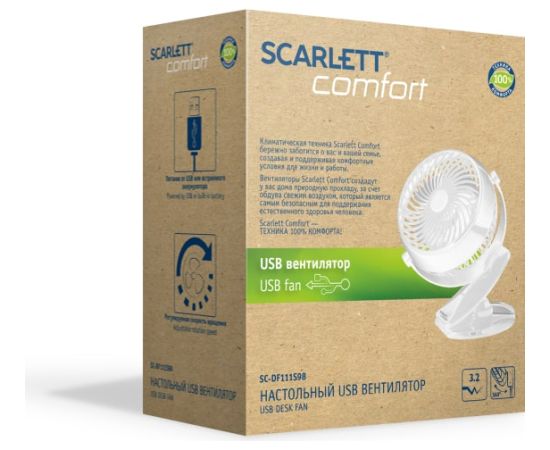 Настольный вентилятор с аккумулятором Scarlett белый SC-DF111S98 будет незаменимыми помощником в жаркую погоду.