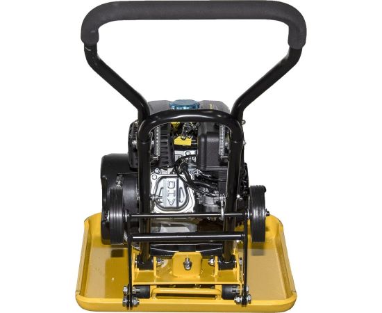 Двигатель виброплиты в сборе с основанием, рукоятка управления, подкатные колеса, крепежный комплект, паспорт изделия.
