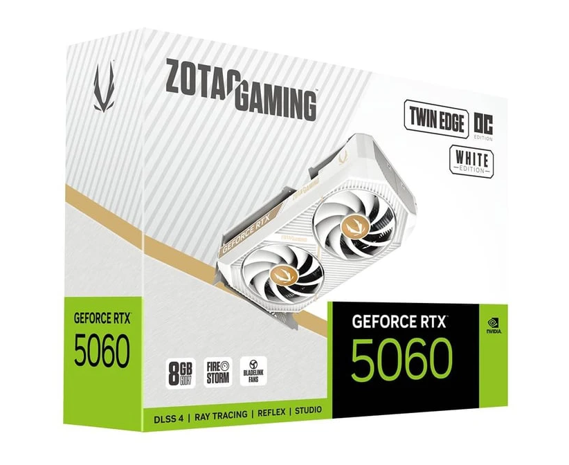 Видеокарта Zotac RTX 5060 Twin Edge OC White ED NV RTX5060 8Gb (ZT-B50600Q-10M) 128bit GDDR7 PCI-E 5.0 2527/28000/HDM