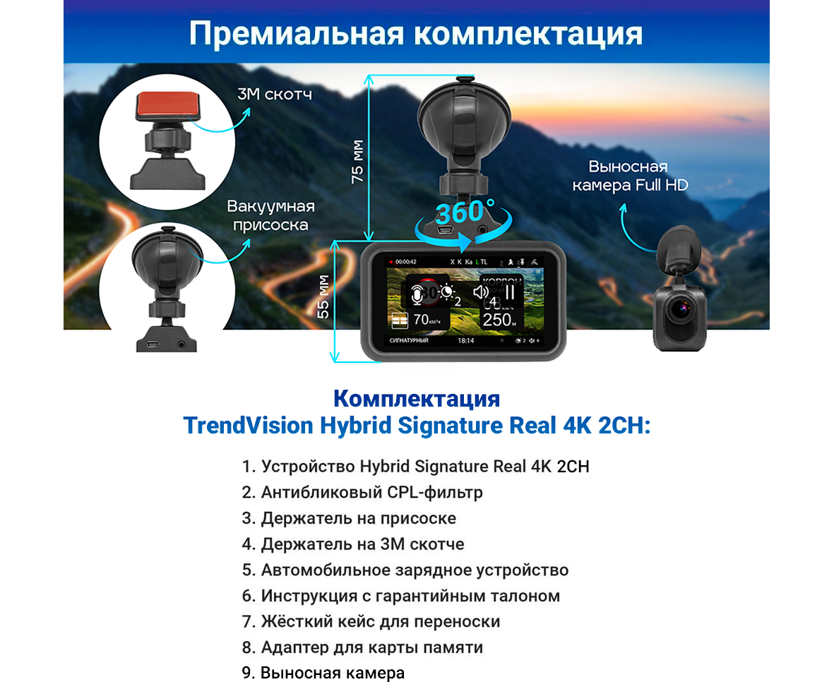 Видеорегистратор с радар-детектором TrendVision Hybrid Signature Real 4K 2CH GPS ГЛОНАСС