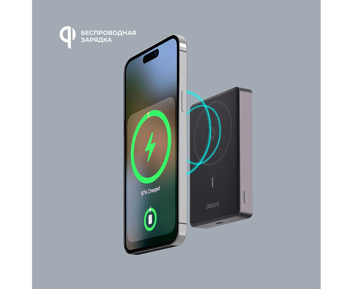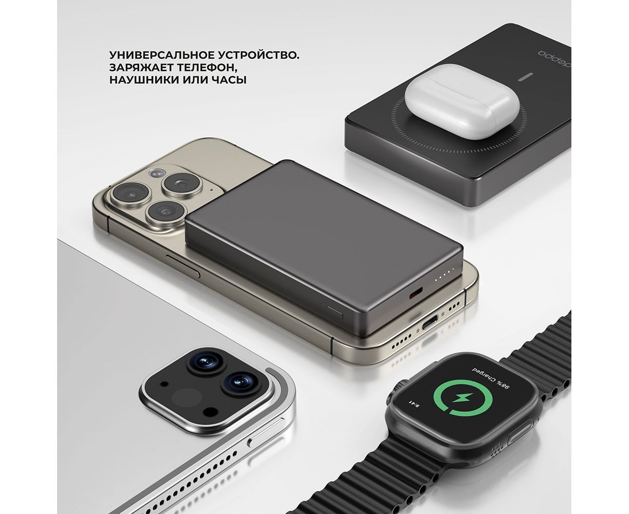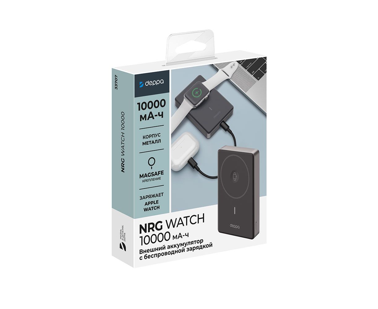Назначение: Внешний АКБ NRG Watch 10000 мА-ч, 15Вт, MageSafe, серый, Deppa