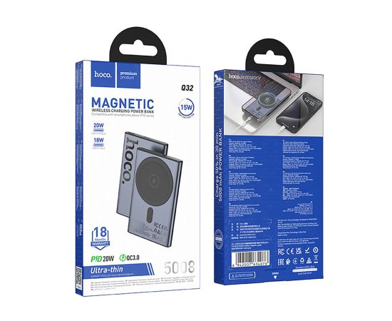 Внешний аккумулятор Hoco Q32 Bird PD20W SafeMag 5000mAh Type-C/Type-C (metal gray)(239681)