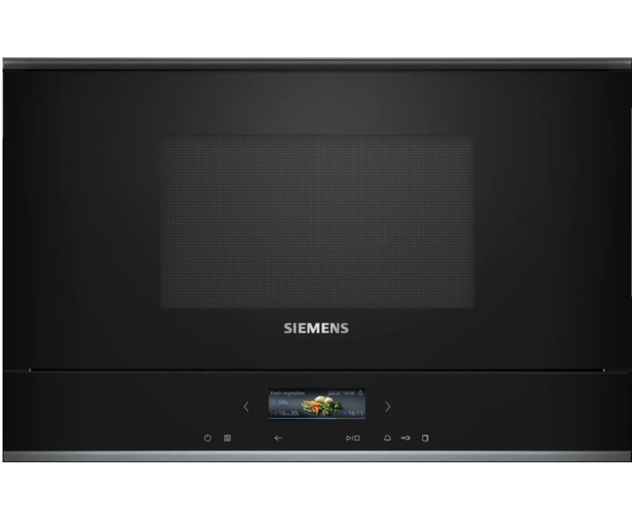 Встраиваемая микроволновая печь SIEMENS BF722R1B1 соло, объем 21л, выходная мощность микроволн 900Вт, управление сенсорное, автоприготовление