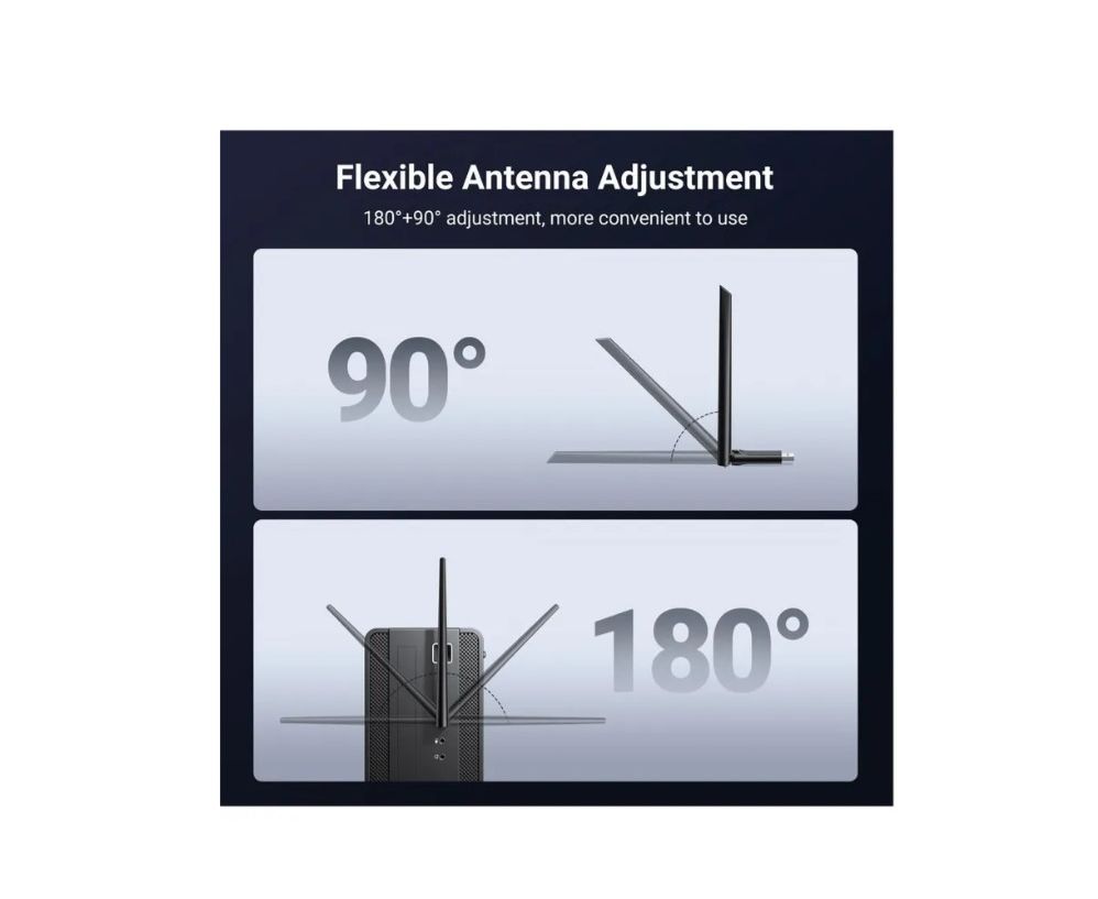 Wi-Fi Адаптер UGREEN CM763 (35265) AX900 USB-A High-Gain Dual Band Wi-Fi Adapter Black