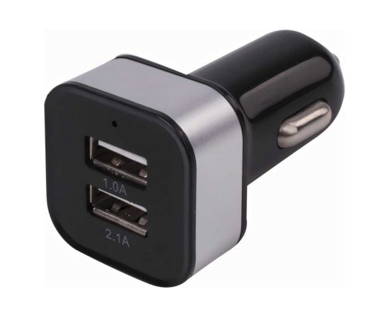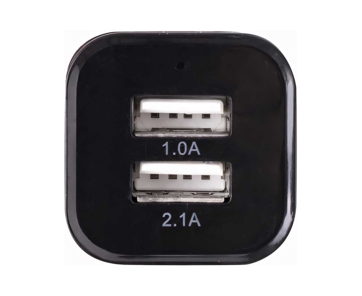Зарядное устройство автомобильное SONNEN, 2 порта USB, выходной ток 2,1 А, черное-белое, 454796